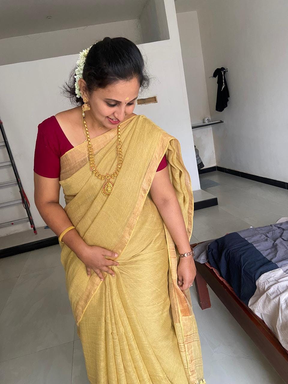 - Handloom sarees may have natural variations like small knots, thread gaps, and color nuances, which are not considered defects.